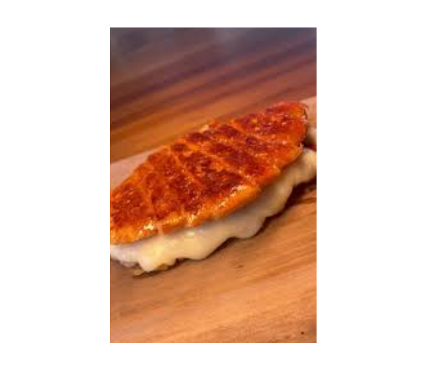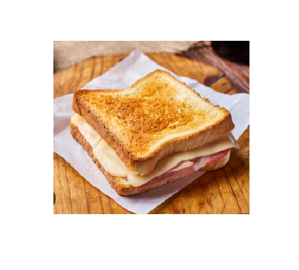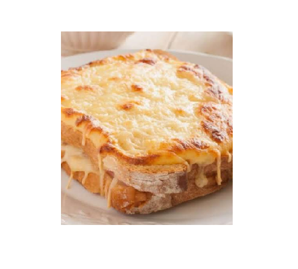 CROQUE MONSIER- PÃO DE FORMA COM BANQUER DE PERU, QUEIJO, OREGANO COM MOLHO DE QUEIJO